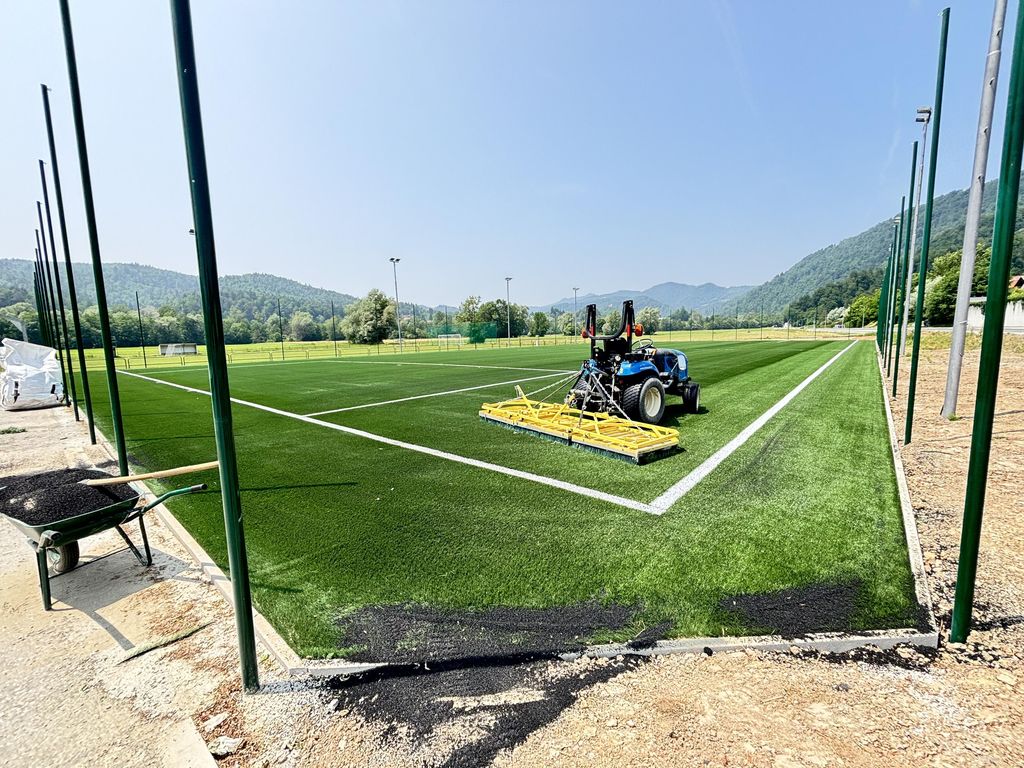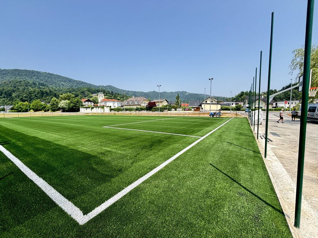 Manjše večnamensko igrišče je dobilo novo umetno travo, ki je nadomestila staro
