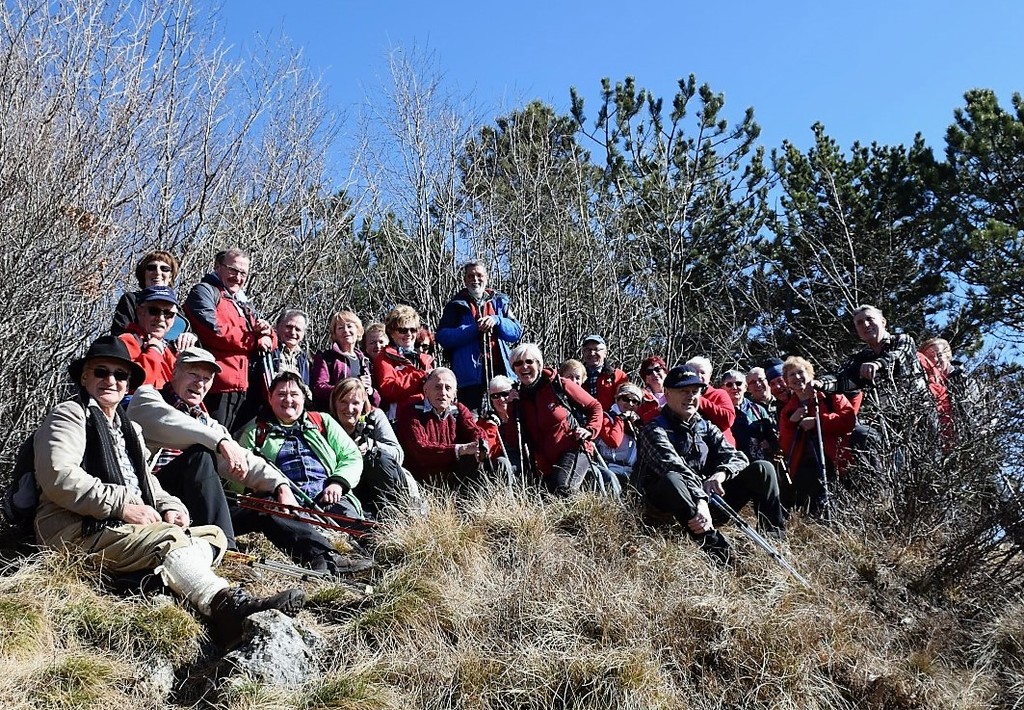 Topli sončni žarki, brezvetrje in lepi razgledi so bili krivi za daljši počitek in gasilsko sliko. Ker pa vodniki največkrat načrtujejo krožne poti, smo se tudi tokrat spustili po drugi kar dolgi in dokaj strmi poti do vasi Jablanica, sredi katere stoji propadajoči Lazarinijev dvorec.
