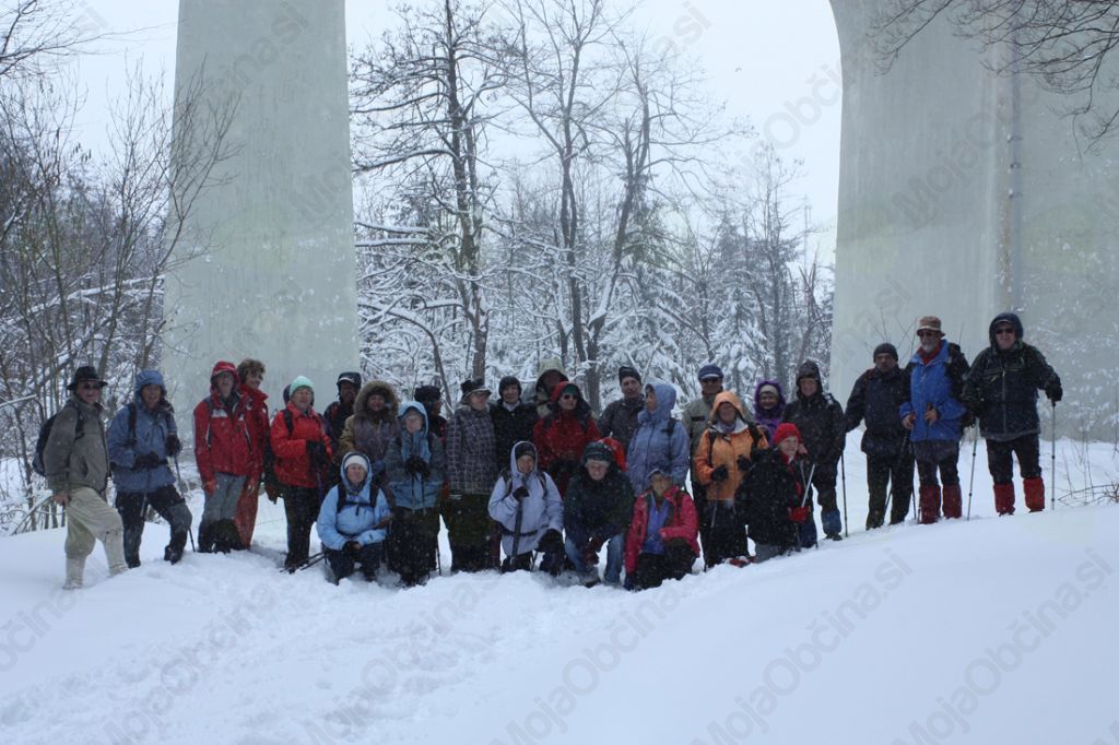 Nori snežni ponedeljek z burjo in žledom na Sežanskem so nam preprečili načrtovani pohod, a peté so nas že tako srbele, da za nobeno ceno ne bi ostali za zapečkom. Jutranja telovadba z lopatami v roki nas je ogrela in že smo se zbrali na našem običajnem mestu ter s pesmijo »Prišla bo pomlad« pričakali avtobus. Ravno prav velik je bil, da nas je 28 pohodnikov varno zapeljal v središče Logatca in pomislite, kam najprej, na kavico seveda, ki nam jo je še dodatno posladkala s potratno potico naša slavljenka Mari.