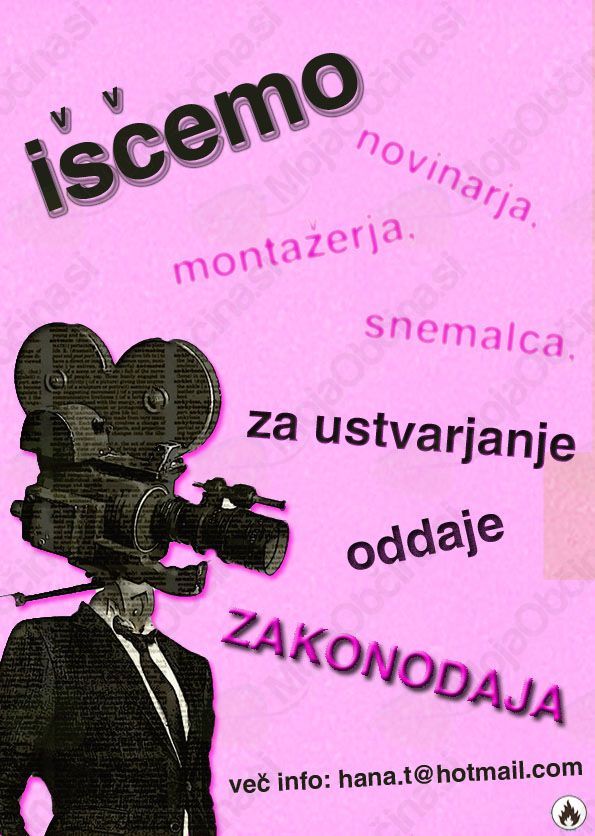 Te zanima montaža, pogled izza kamere ali občutek pred kamero? Piši na hana.t@hotmail.com in se pridruži Zakonodajni ekipi!