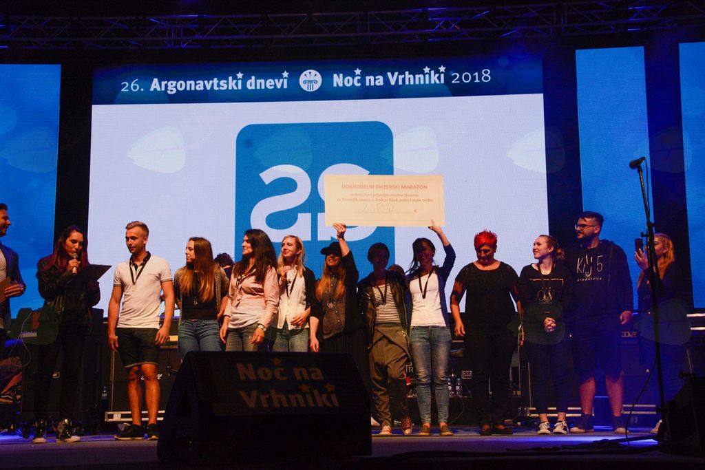 Da je tradicionalna Noč na Vrhniki največja zabava v mestu že dolgo ni dvoma - vsako leto jo obišče več tisočglava množica obiskovalcev in tudi letos ni bilo nič drugače. Program se je začel ob pol sedmih zvečer z nastopi otroških plesnih skupin (Plesna šola Petka), s čimer je organizator poskrbel za najmlajšo publiko. Prvič letos pa je sočasno že od zgodnjih dopoldanskih ur na sosednji ploščadi potekal tudi frizerski mraton. Preko trideset frizerjev, frizerk in vizažistk se je 12 ur trudilo za lepe pričeske obiskovalcev in njihov make-upov. Dogodek je bil dobrodelne narave: obiskovalci so bili omenjenih storitev deležni v zameno za prostovoljni prispevek. Malo pred polnočjo je Neška iz istomenskega frizerskega salona na Stari cesti, ki je bila pobudnica maratona, obelodanila zbrano vsoto: 2413,42 €. Sredstva bodo namenili v dobrodelne namene za počitnice in šolske potrebščine otrok iz socialno ogroženih družin.