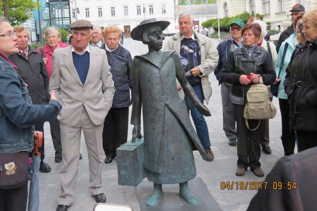 Sledil je voden ogled po starem mestnem jedru. Odkrivali smo bogato stavbno dediščino: pri Celjskem domu sredi trga stoji bronasta skulptura pisateljice in popotnice Alme Karlin, pred Narodnim domom skulptura fotografa Pelikana, pri cerkvi na Slomškovem trgu kip Antona Martina Slomška, v Stari grofiji je videti poslikan strop in še in še.