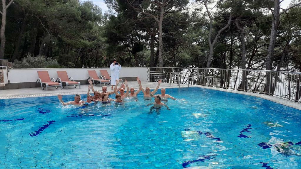 Lošinjski arhipelag je poln lepih zalivov z zdravilno klimo in največ sončnimi urami letno. Mir in bujna vegetacija, tudi kamenje, oljke in kristalno čisto morje nas je obdajalo na naših sprehajalnih poteh in stezicah, ki so speljane vsepovsod med stoletnimi bori. Omamno dišeč zrak po mediteranskem rastlinju nas je spremljal na vsakodnevnih sprehodih in pohodih, daljših in krajših, vse za dobro kondicijo in zdravje. Druženja in dobre volje ni zmanjkalo, včasih malo utrujenosti, ki pa je minila z relaksacijo v bazenu in savnah. Z jutranjo telovadbo smo se razgibali in nadihali svežega zraka. Da nam je potem zajtrk bolje teknil. Vemo koliko raznovrstne hrane se je znašlo na naših krožnikih, saj je hotel znan po zelo dobri kulinariki. Gostoljubnost in prijaznost hotelskega osebja nam je pričaralo nasmeh na obrazih. Nekateri gostinci v mestu pa nas že poznajo in nas nagovarjajo z Vrhničani.