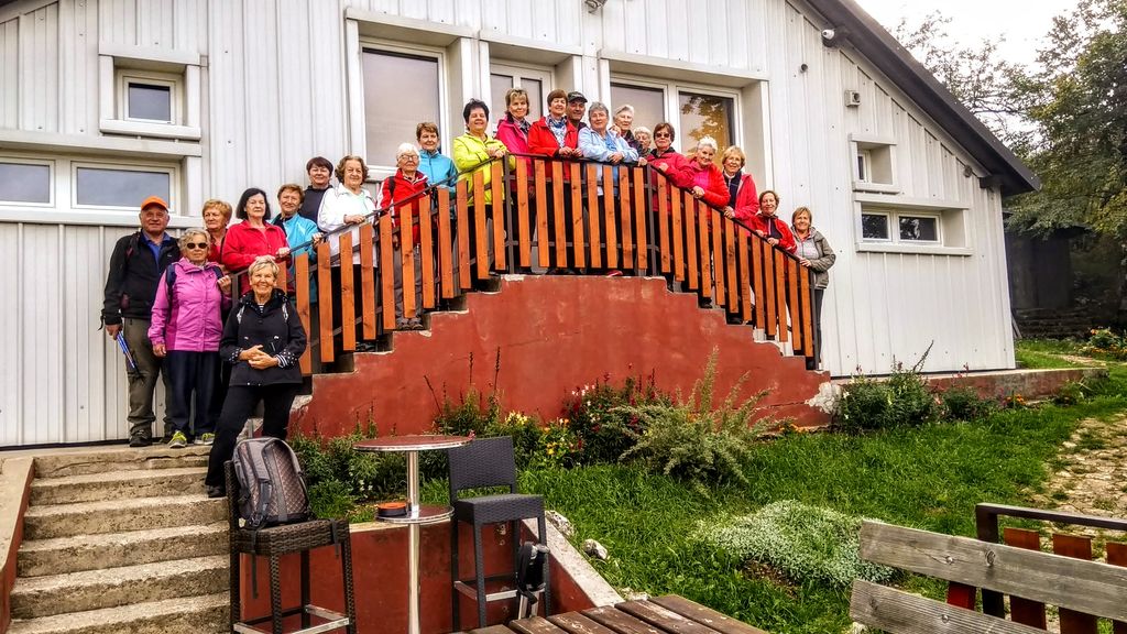 V suhem, a malo meglenem oktobrskem jutru se je 21 Vandrovk, Vandrovec Andrej in vodnik Frenk odpeljalo proti Postojni, kjer je izhodiščna točka na hrib Pečna reber, ki leži 763 m visoko. Pohod smo pričele po asfaltni cesti ob območju vojaškega poligona, mimo spomenika žrtvam druge svetovne vojne in po skalnati poti se povzpele in obhodile oddajnik, ki je postavljen na vrhu. Kamnita pot zna biti spolzka, kadar je veliko vlage v ozračju, še posebno zato, ker so nedavne padavine zlizale apnenčaste skale. Treba je bilo kar nekaj previdnosti, na kar nas je opominjal vodnik. Sledil je spust na 733 m mimo zvona želja in do koče Mladika, ki je zaprta in iščejo novega najemnika. Tu smo imele krajši postanek. Izkoristile smo ga za okrepčilo, slikanje in čudoviti razgled na Postojno in njeno okolico. Kaj več pa se ni videlo skozi prosojne meglice. Prijetno preživeto dopoldne in pogled na naravo, ki je počasi pričela spreminjati barve, sta nas napolnili z energijo in dobro voljo.