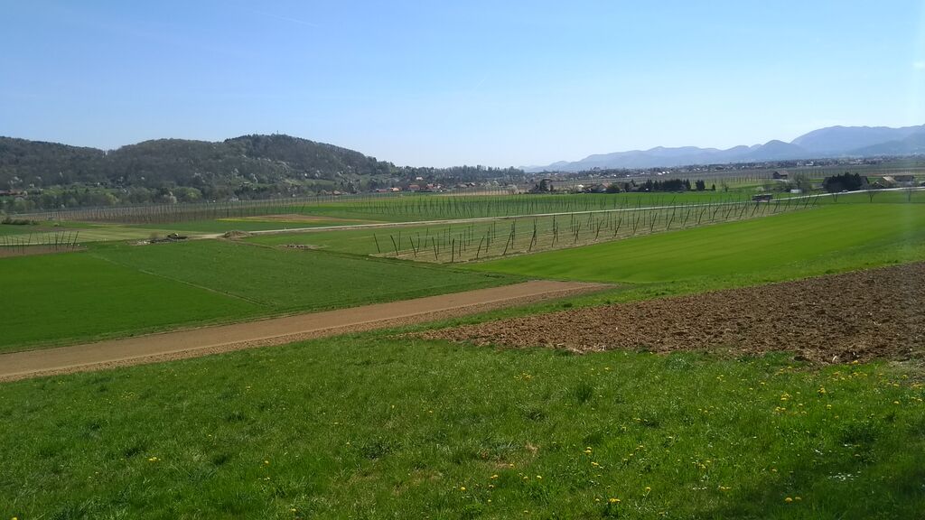 Ob poti smo občudovali že dobro prebujeno naravno, lepo obdelana polja in velike nasade hmelja.
