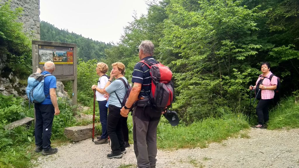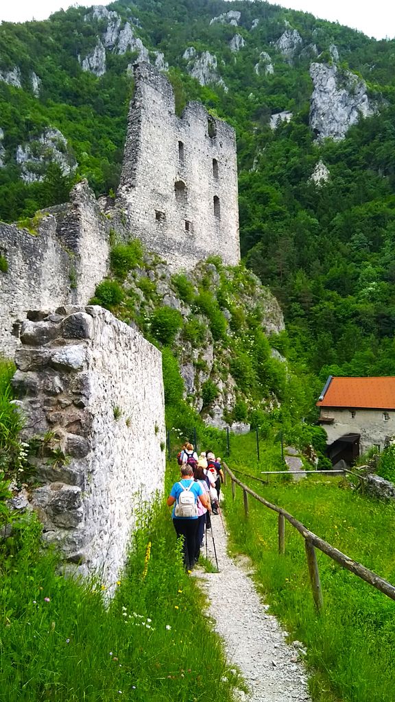 Po deževnem torku v mesecu maju nas je prvi torek, 3. 6. 2025, razveselil z sončnim jutrom. Zbrana pohodna skupina Vandrovke smo se z vodnikoma Jožetom in Frenkom odpeljali proti Begunjam in gradu Kamen. Najprej je sledila jutranja kava in potem lahek vzpon skozi gozd, ki nam je prijazno ponudil zeleno senco dreves in zaščito pred soncem. Mir, žvrgolenje ptic in ob poti na drevesa pripete pesmi naših pesnikov so tako navdihnile našo Majdo, da smo pod njenim vodstvom tudi zapele. Opazovale smo cvetočo materino dušico, krvomočnico, papeževo svečo, orlico. Prečkale smo tudi strmo pobočje, imenovano melišče, ki nastane s krušenjem skale in kopičenjem drobnega kamna. Kaj kmalu smo prispele do razvalin gradu Kamen, ki je bil sezidan na manjši vzpetini in je bil nekoč v lasti različnih plemiških družin, ki so ga postopoma širile in utrjevale. Grad je bil dokončno opuščen v 18. stoletju. Njegovi kamniti zidovi so široki kar dva metra. Vhod v grad je bil skozi dvižni most ob zidanem dvorišču. V notranjosti dvorišča je bila shramba, kuhinja, prostori za služinčad. V višjih nadstropjih so bile gosposke sobe in spalnice. Lastniki niso prebivali v gradu, ampak so ga upravljali s pomočjo kastelanov ali gradnikov. Po končanem ogledu je sledila malica iz nahrbtnika in nadaljevanje pohoda ob potoku in po delno asfaltirani cesti mimo grobišča talcev 2. svetovne vojne do doma v Dragi. V prijetni senci in krajšemu postanku smo se zadovoljni odpravili proti avtobusu in zaključili današnji torkov pohod. Vandrovke, dobro se odpočijte, da se naslednjič zberemo v čim večjem številu, saj nas takoj v začetku septembra čaka prvi zunanji pohod po čudoviti naravi. Vodnikoma Frenku in Jožetu ter vsem ostalim pohodnim skupinam lepo poletje in varen korak. Posebej pa hvala Elici za vso njeno organizacijo in čas. Zapis in foto: Vesna Stare