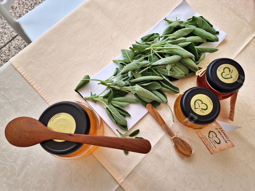 med. V cvetlični med je položila šop žajbljevih listov, ki pa se, kot pravi, morajo