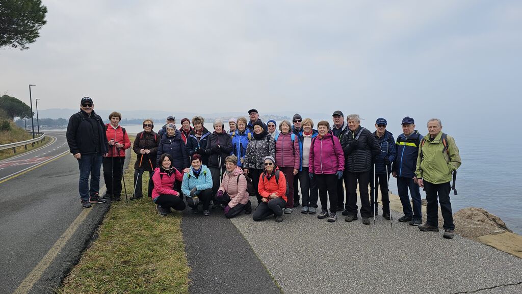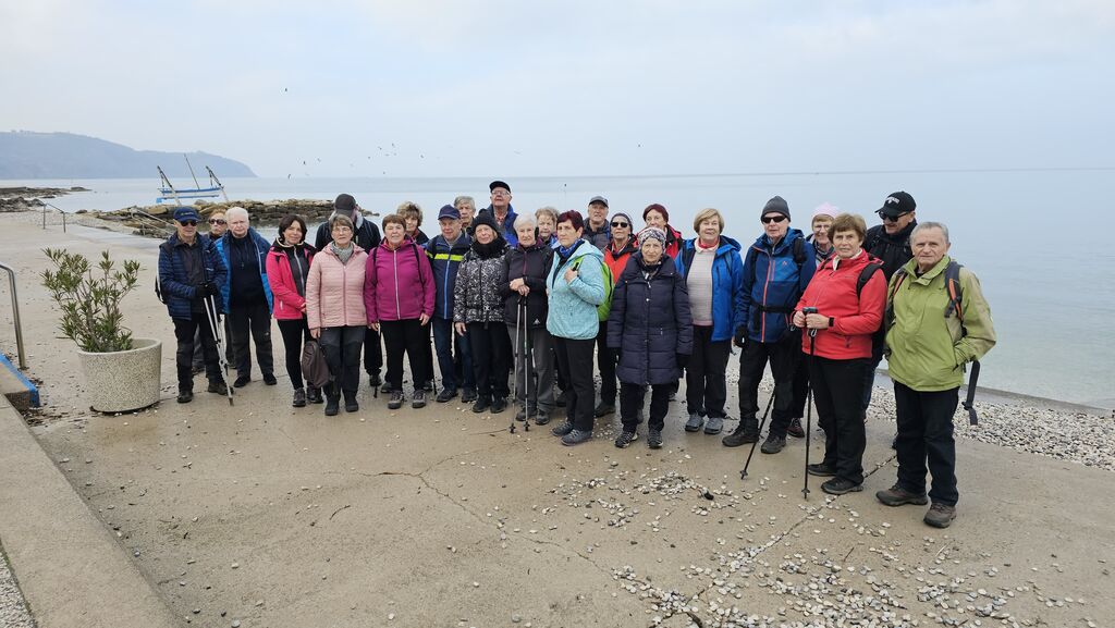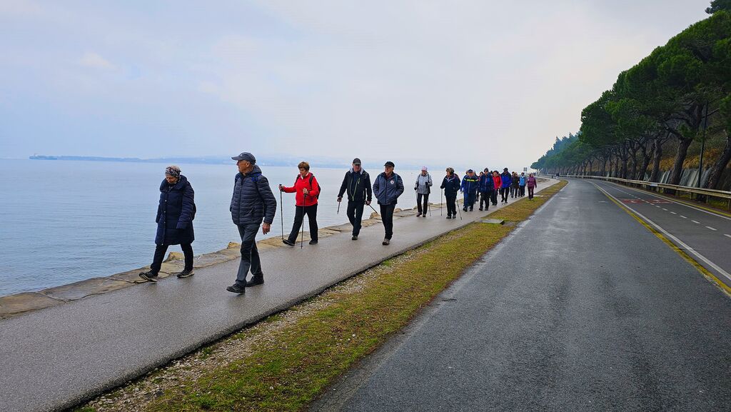 Torek, 27. 1. 2026 Sivo, megleno in hladno jutro na Vrhniki ni obetalo nič kaj prijaznega dneva, zato smo se odpeljali proti morju, kjer je bilo napovedano toplejše in sončno vreme. Na poti proti našemu cilju so se menjavali pasovi megle, v oklici Kozine jasno in sončno brez sapice, pa spet megleno in sončno in spet megleno. Pogled na Koper, ko smo se izvili iz zadnjega tunela, nas je malce presenetil, saj so se proti Semedeli vlekle nizke megle, proti skrajnemu zahodu pa debel pas sivine. Ob izstopu iz avtobusa pri Žusterni smo malo skomigali z rameni, ker nas ni pozdravila tista dvojna modrina, modrina neba in morja. Sonce je kukalo izza prosojnih meglic; le tu pa tam je kak žarek dal upanje na bolj prijazno podobo pokrajine, a smo bili zadovoljni, saj je bilo dobrih 9 stopinj Celzija. Takoj smo ugledali peš potko tik ob obali, ki jo velikanski beli skalni bloki čuvajo pred močnejšimi valovi. Nad mirnim morjem so se prav glasno prerekale jate belih galebov in domačini vedo povedati, da čutijo spremembo vremena, zato tako vreščanje. Toda ščebetanje nas ni motilo, saj so ob sprehajalni poti nasajene različne drevesne vrste, ki vzbujajo pozornost s svojo mogočnostjo in razvejanostjo kljub močnim vetrovom, ki jih večkrat bičajo. Starejše pinije in borovci v vročih poletnih mesecih dajejo dovolj sence, da lahko sprehajalci posedajo na ličnih klopcah in uživajo morski zrak. Mnogo nižje pa so oljke, ker so jih šele nasadili pred nekaj leti. Ob poti so razstavljene slike in maketa potopljene ladje Rex. To je bila največja italijanska luksuzna čezoceanska potniška ladja. V času druge svetovne vojne so jo Italijani skrivaj zasidrali najprej v Genovi, a so jo zavezniki bombardirali, nato s pomočjo podmornic odpeljali v Trst, nato v Pulj in septembra 1944 v Koprski zaliv med Koprom in Izolo. Tam je zaradi globine le 200 m nasedla. Zavezniki so jo izsledili in jo le nekaj dni po vplutju raketirali. Rex je zagorel, se nagnil in potonil. Ker je bilo po vojni to jugoslovansko ozemlje, Rexa niso mogli reševati Italijani, ampak so naši potapljači leta 1950 ostanke ladje razrezali. Ogledamo si lahko še spominsko obeležje solidarnosti, v bližini je ladjedelnica, nato center Izole, pa polna Marina, kjer smo si »izbirali jahte« glede na našo domišljijo. Še pogled na hotel Delfin, kjer je svoj dopust preživel že marsikateri upokojenec. Toliko vsega za dobri dve urici prijetnega sprehoda! Na povratku proti domu smo se ustavili v gostilni pri Kranjcu, kjer smo potrdili osemdeset letnico kar dveh naših pohodnikov. Za dobro razpoloženje je poskrbelo še vreme, saj nas je pozdravilo sonce. Ko smo se poslavljali, smo imeli v mislih že naslednje druženje. Zapisala: Elica Brelih Slike: Željko Jadanič