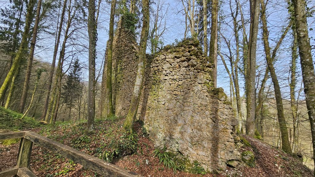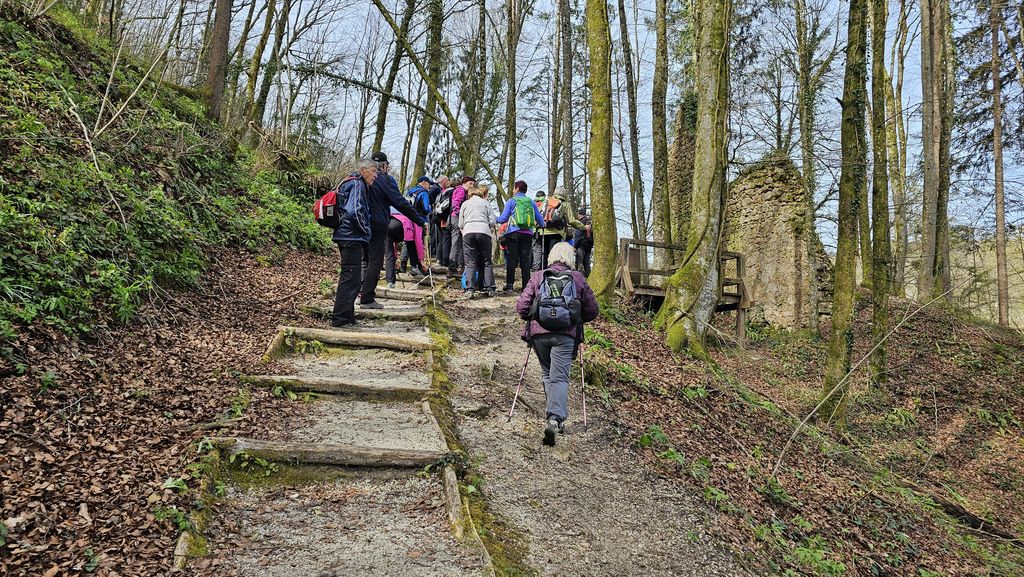 Mimo zunanjih bazenov smo se povzpeli do ruševin gradu Štrlek. Olga nam je prebrala zgodbo enega od številnih dolenjskih gradov, ki je bil prvič omenjen leta 1247. Zanimivo je, da sta grad že takrat na črno postavila dva viteza iz Mokronoga. Frajzinški škof je zahteval rušitev, a se je po dolgih letih premislil. Leta 1306 se je spet na črno vanj vselil vitez Bartold, a že konec 15. stoletja je omenjena le ruševina.