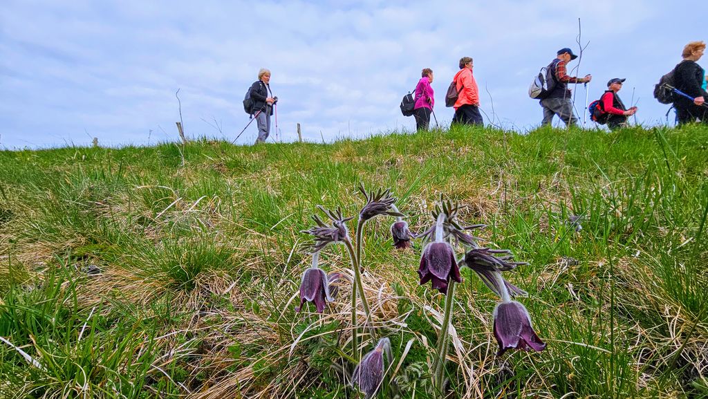 Potem smo se odpravili proti Brezovici v smeri Šmarjete in nazaj do izhodišča. Na suhem travnikunob poti smo opazili vijolične kosmate cvetlice, ki so bile podobne velikonočnici, vendar so bili cvetovi temnejši in povešeni kot pri našem močvirskem tulipanu. To so navadni kosmatinci, sorodniki velikonočnice. Tudi novo vrsto teloha smo spoznali in sicer temno škrlatni teloh.