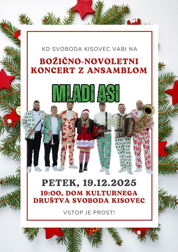 Kulturno društvo Svoboda Kisovec in občina Zagorje ob Savi vas vabita na Božično novoletni koncert v dvorano Kisovec.
