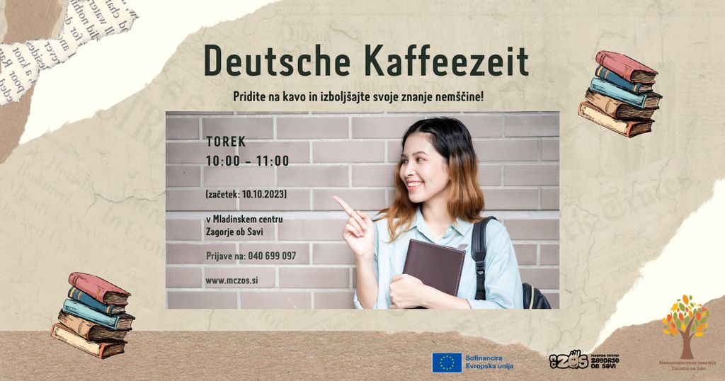 Deutsche Kaffeezeit” se začne 10. 10. 2023 in se nadaljuje vsak torek od 10.00 do 11.00 v Mladinskem centru Zagorje ob Savi.