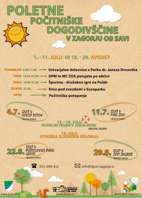 Nekaj privlačnih možnosti vam ponujata tudi Mladinski center Zagorje ob Savi in Društvo prijateljev mladine Zagorje ob Savi!
