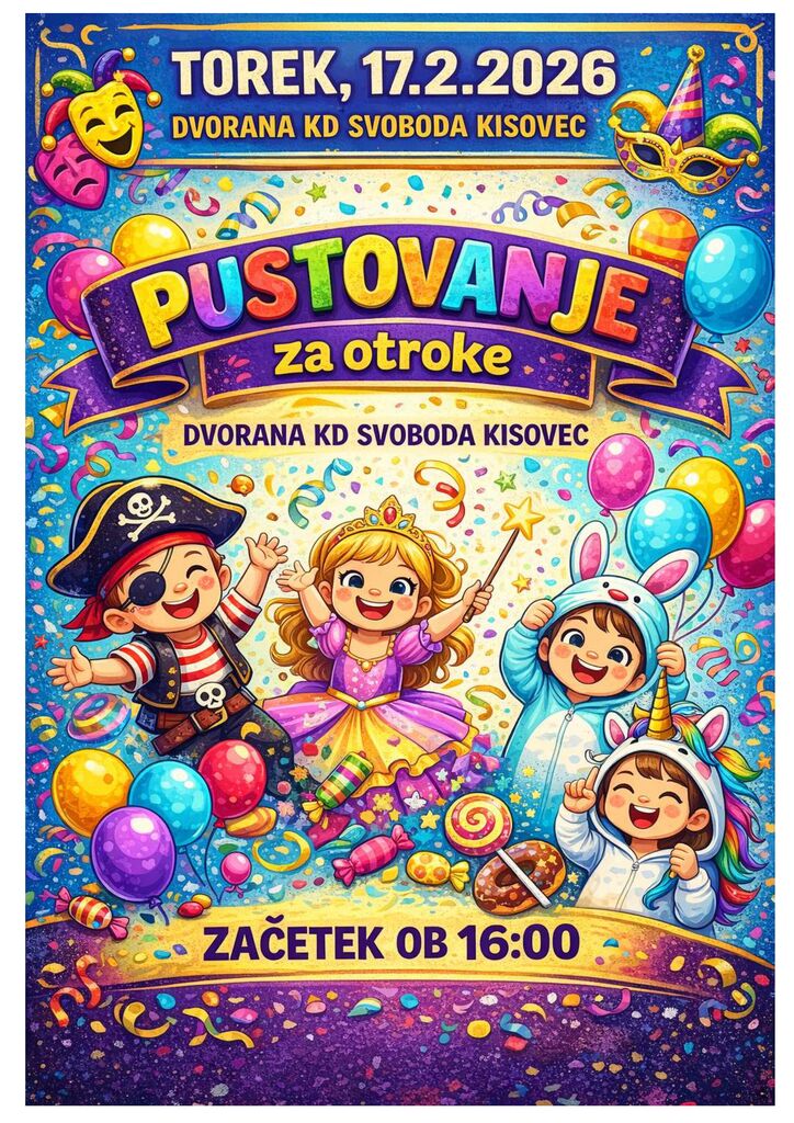 V domu Kulturnega društva Svoboda Kisovec vsako leto pripravimo animacijo za otroke oblečene v pustne maske.
