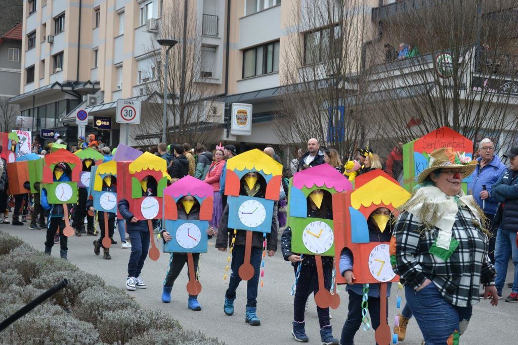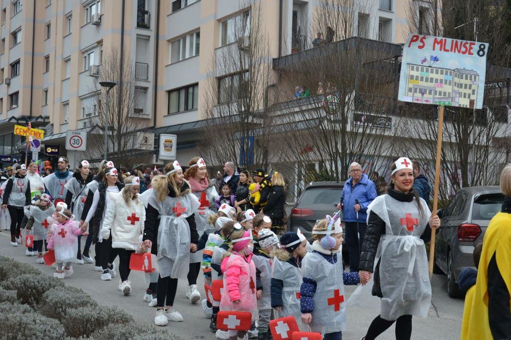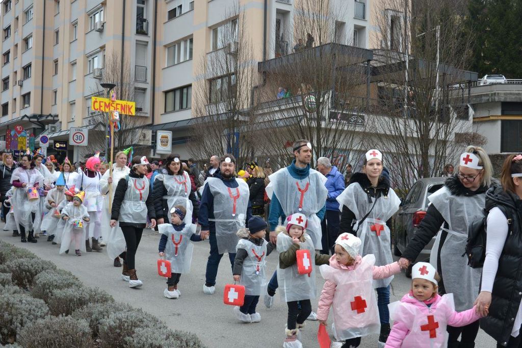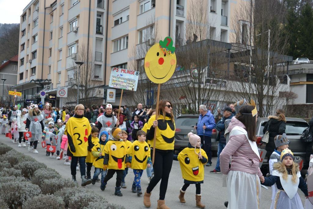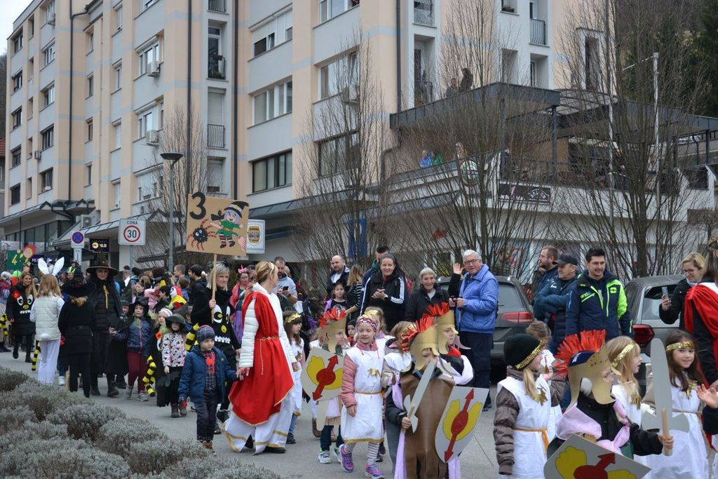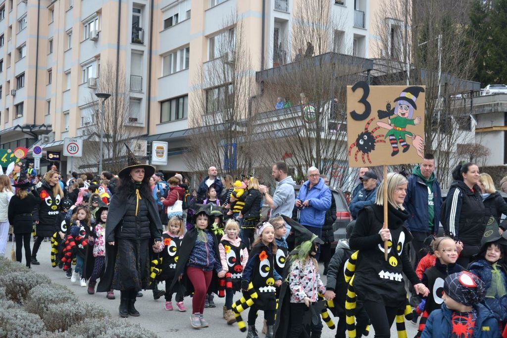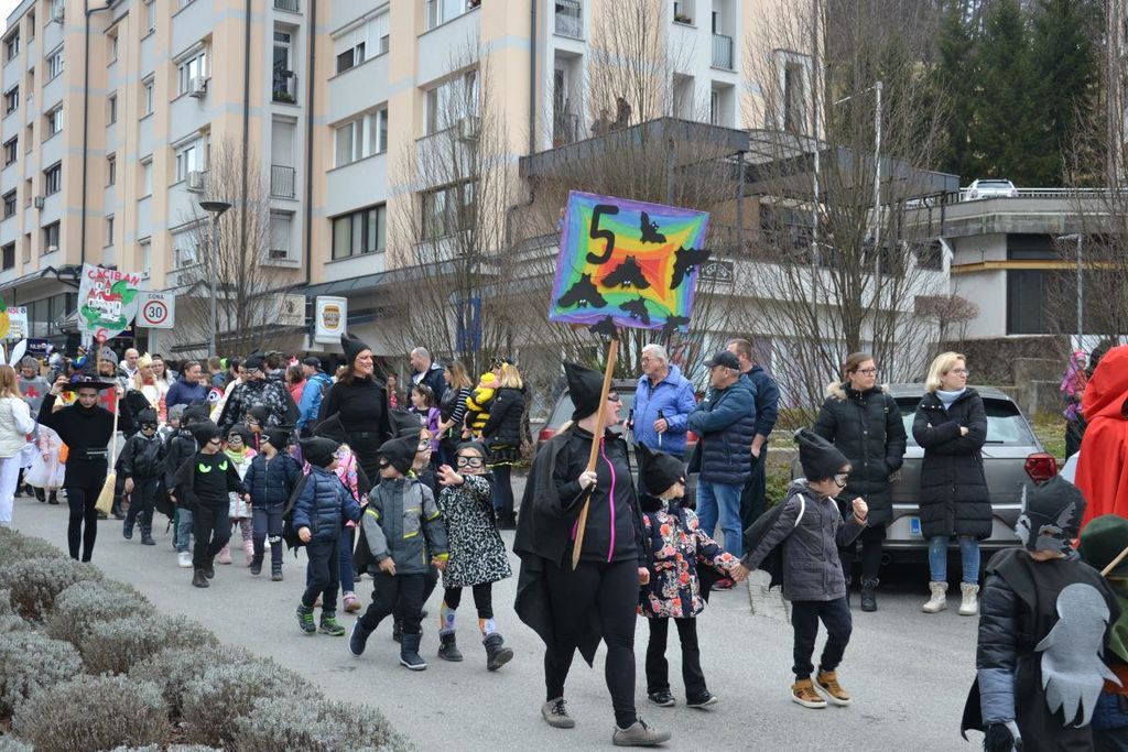Maškare so na ploščadi zaplesale z Alenko Kolman, posladkale pa so se s pustnimi krofi.