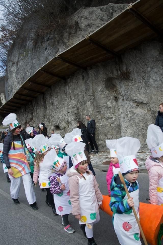 Številne zbrane je zabavala Alenka Kolman, maškare, ki so tokrat bolj kot zimo preganjale viruse, pa so se posladkale s sladkimi krofi.