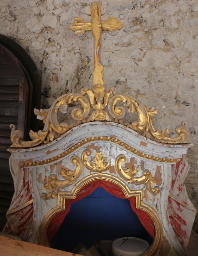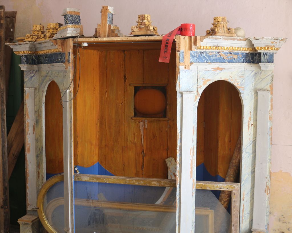 V maju 2021 smo omaro prepeljali v atelje in pričeli z delom. Veliko poškodb je nastalo zaradi neprimernih pogojev hranjenja in delovanja lesnih škodljivcev. Po posegu smo jo prepeljali v cerkev in jo namestili na spovednico. Vanjo smo postavili že v preteklosti obnovljen Marijin procesijski kip.