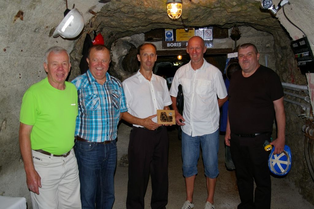 - Posebna zahvala pa gre seveda zbiratelju Borisu Jevšniku, ki smo mu ob tej priliki podarili skromno darilo, premog iz jame Kotredež in knjigo Zadnji šiht.