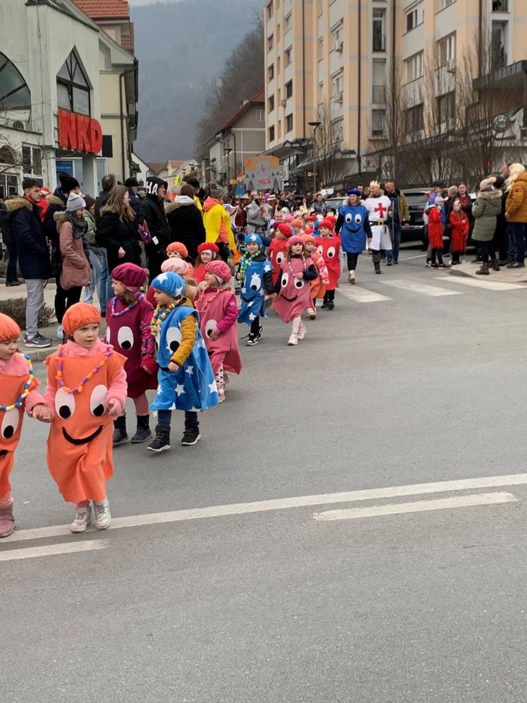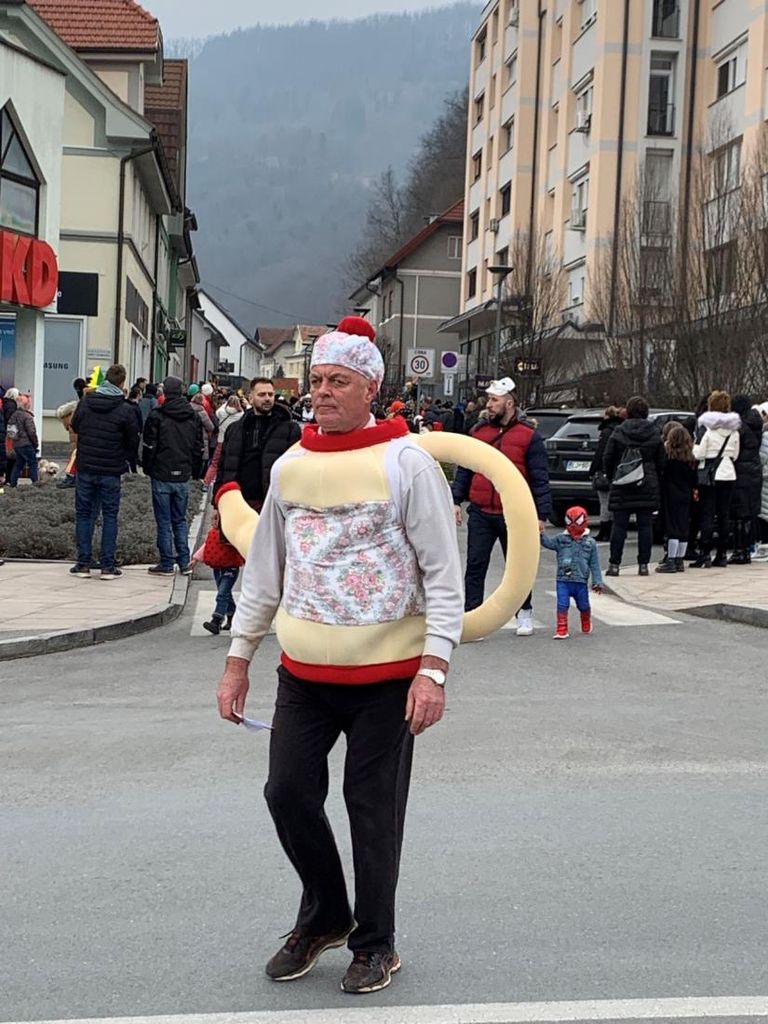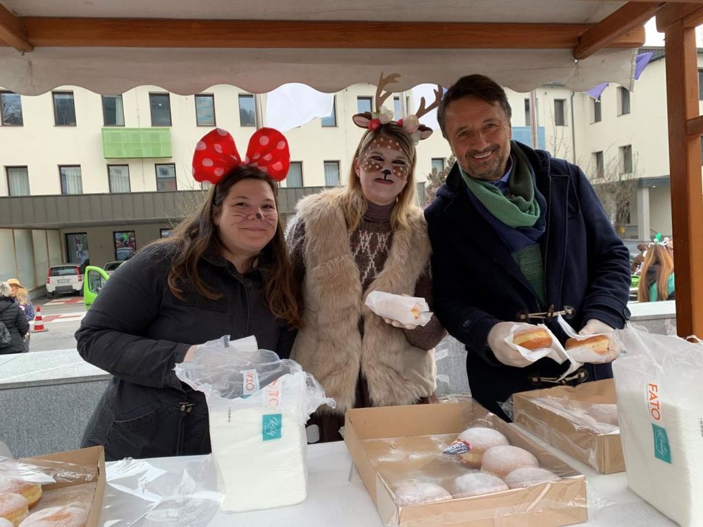 Maškare so se posladkale s slastnimi krofi, ki jih je zaposlenim iz Vrtca Zagorje pomagal deliti tudi župan Matjaž Švagan.