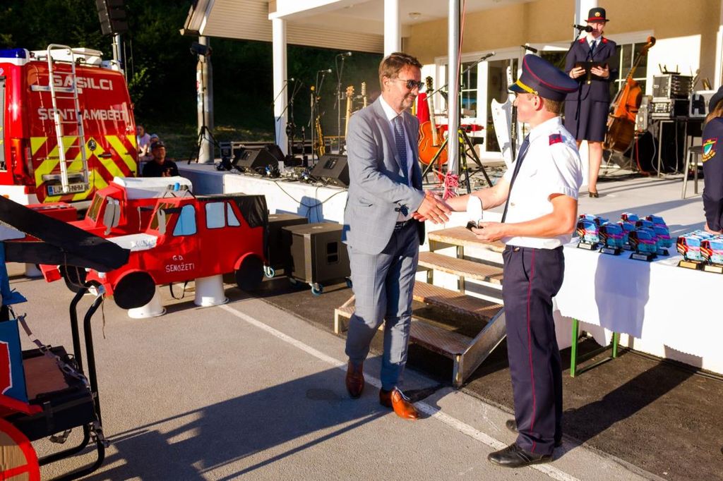 Župan Občine Zagorje ob Savi Matjaž Švagan jim je na slovesnosti izročil ključe kombiniranega vozila Mercedez-benz Sprinter z nadgradnjo in opremo, ki omogoča gašenje požarov.
