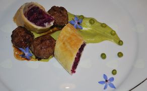 16.00: Predstavitev medenega menija z zmagovalno jedjo »VOU« – slastna govedina z vlivanci treh okusov in zelenjavo in degustacija – Marija Arh Ivanšek in Sandi Marolt;