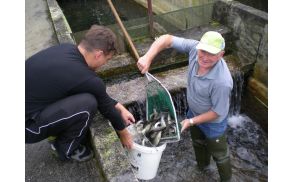 Dvoletne mladice so nabrali v ribogojnici na Ribniku, kjer jih sami vzgajajo in tako skrbijo za poribljevanje svojih potokov že vrsto let.