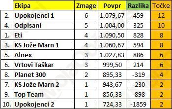 Upokojenci 1 še brez poraza, prva zmaga za TOP TEAM.