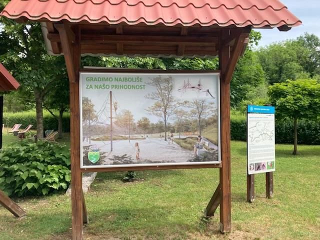 Ob igrišču se bo mogoče tudi družiti in počivati v senci dreves, na zanimivih sedalnih elementih v obliki skal ali na postavljenih klasičnih klopeh in ležalnikih.