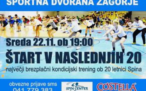 Ob 20 letnici društva SPIN Vas vabimo na največji tradicionalni brezplačni kondicijski trening v športno dvorano v Zagorju. Lansko leto nas je bilo 151.