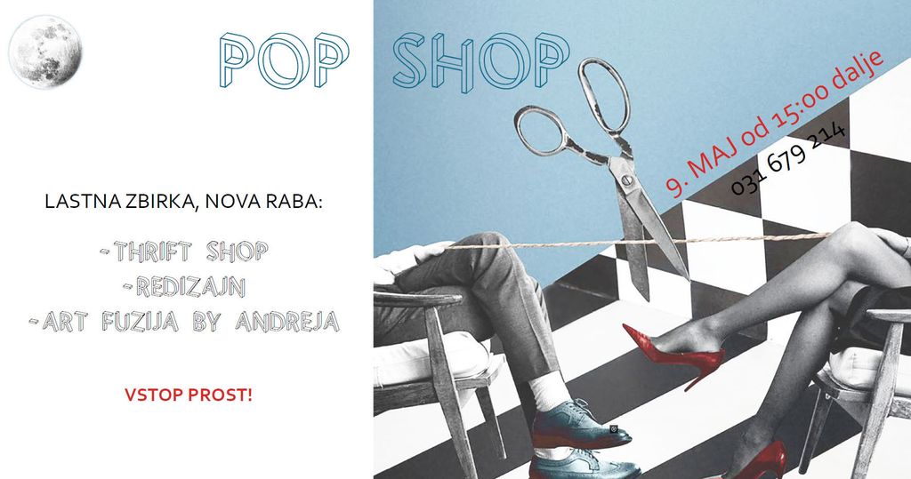petek, 9.5. od 15:00 do 20:00 ure, prireja POP SHOP -