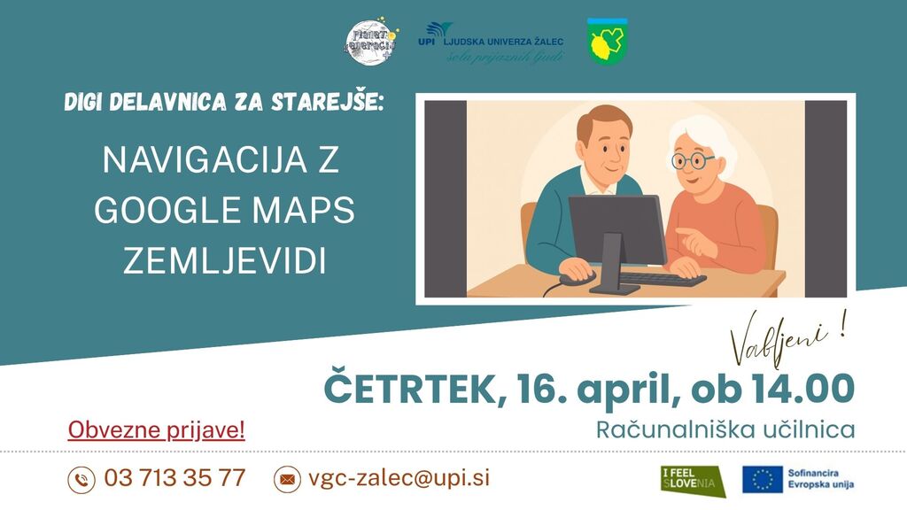 Delavnica je primerna za vse, ki želite izboljšati svoje digitalne veščine in se pri uporabi navigacije počutiti bolj samozavestno. Vabljeni, da prinesete tudi svoj pametni telefon in znanje preizkusite v praksi.
