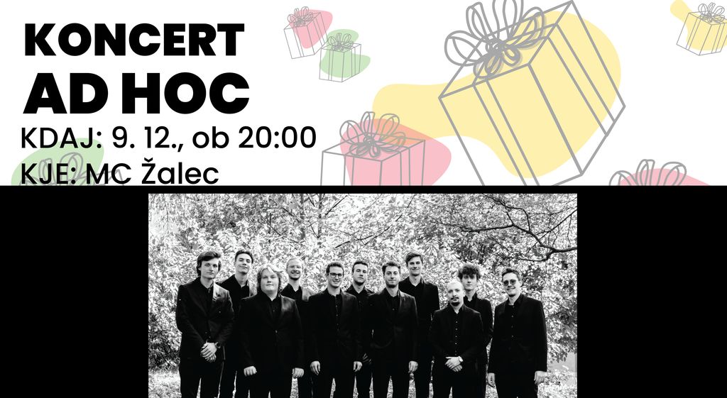 Vljudno vabljeni na koncert vokalne skupine Ad Hoc, ki bo v soboto, 9. decembra 2023.