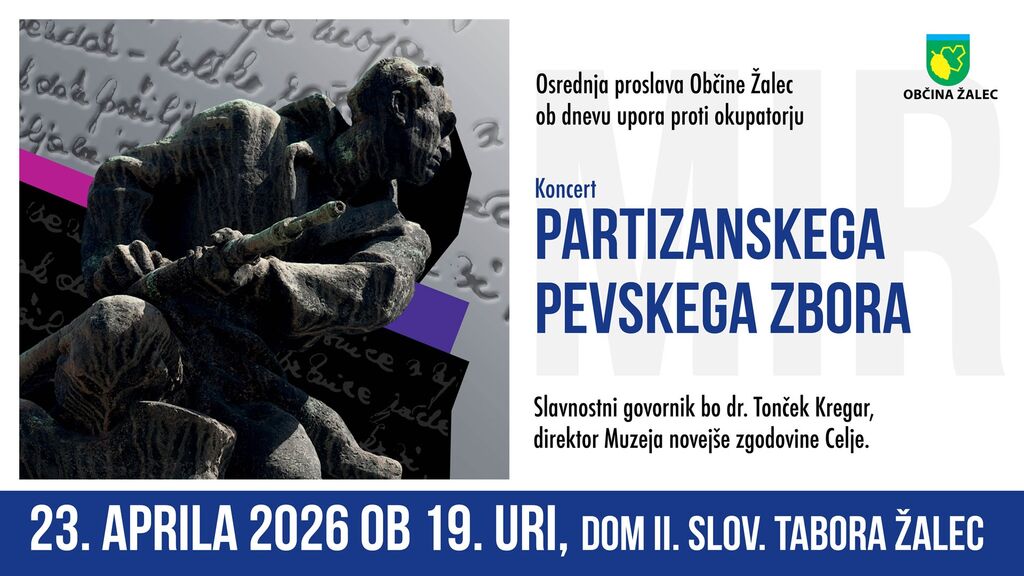 Vljudno vas vabimo na osrednjo proslavo Občine Žalec ob dnevu upora proti okupatorju, ki bo v četrtek, 23. aprila 2026, ob 19. uri v Domu II. slovenskega tabora Žalec.