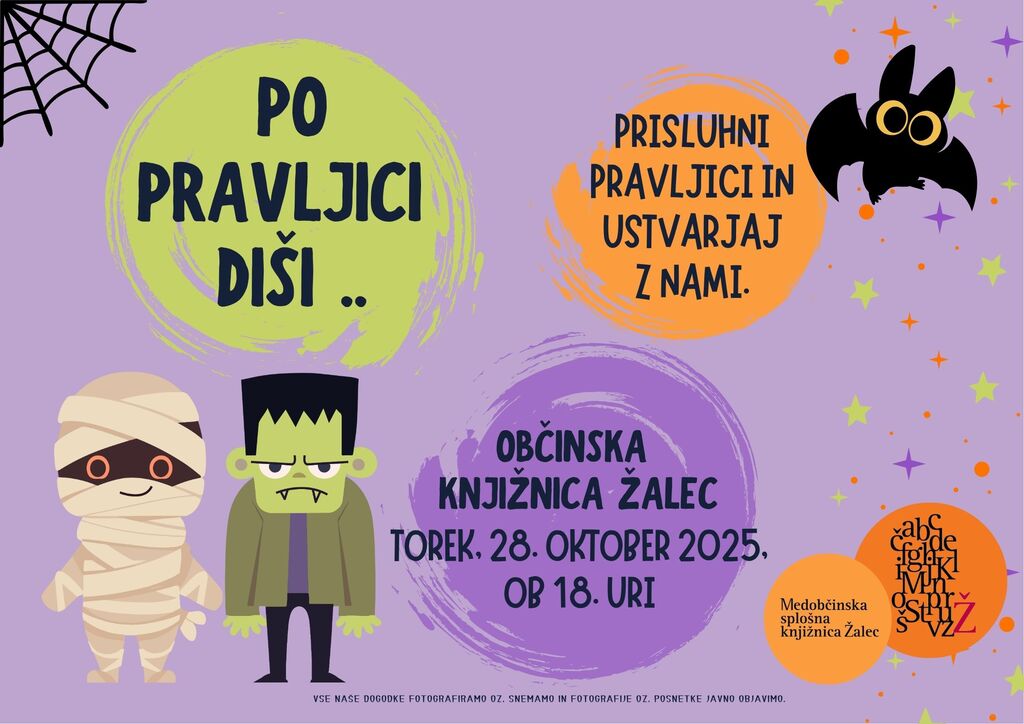 V torek, 28. oktobra 2025, ob 18. uri, vabljeni v Občinsko knjižnico Žalec, kjer bomo skupaj prisluhnili pravljični zgodbi in ustvarjali v duhu prihajajoče noči čarovnic!