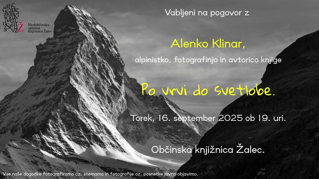 Torek, 16. september 2025, ob 19. uri v Občinski knjižnici Žalec.