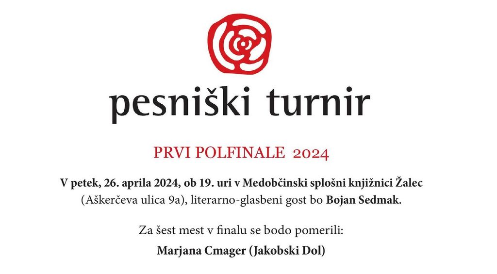 V petek, 26. aprila 2024, ob 19. uri v Medobčinski splošni knjižnici Žalec (Aškerčeva ulica 9a), literarno-glasbeni gost bo Bojan Sedmak.