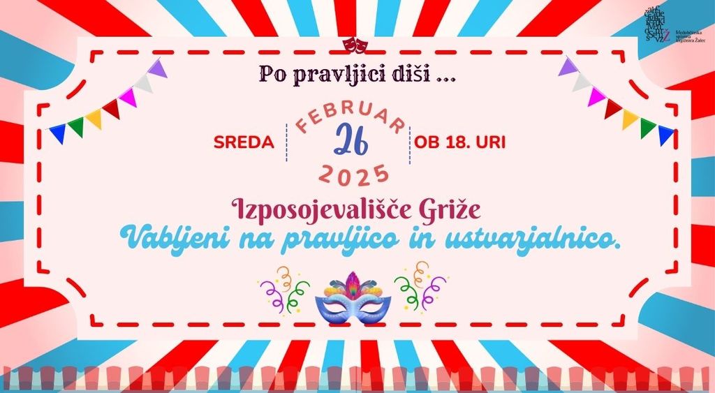 vabljeni na pravljično uro, ki bo v sredo, 26. februarja 2025, ob 18. uri v Izposojevališču Griže.