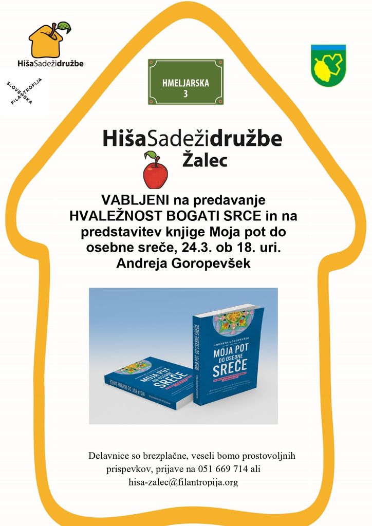 Organizator: HIŠA SADEŽI DRUŽBE ŽALEC - SLOVENSKA FILANTROPIJA - ZDRUŽENJE ZA PROMOCIJO PROSTOVOLJSTVA