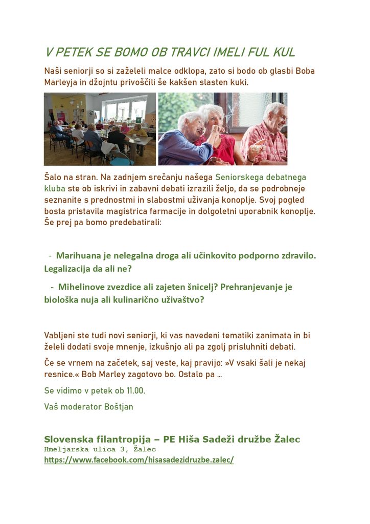 Organizator: HIŠA SADEŽI DRUŽBE ŽALEC - SLOVENSKA FILANTROPIJA - ZDRUŽENJE ZA PROMOCIJO PROSTOVOLJSTVA