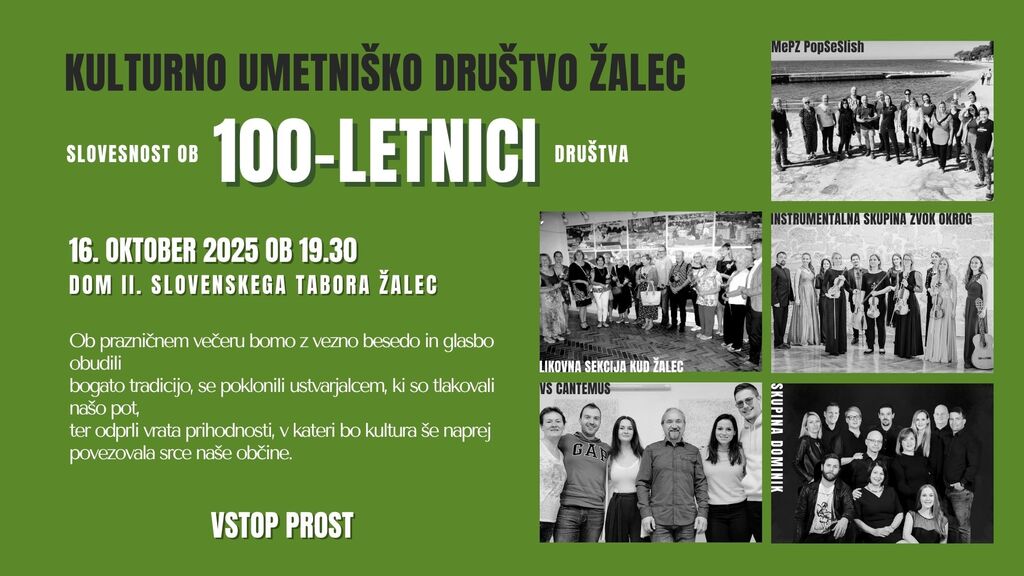 Vabimo vas, da z nami delite trenutek, ko bomo skupaj počastili 100-letnico delovanja KUD Žalec.