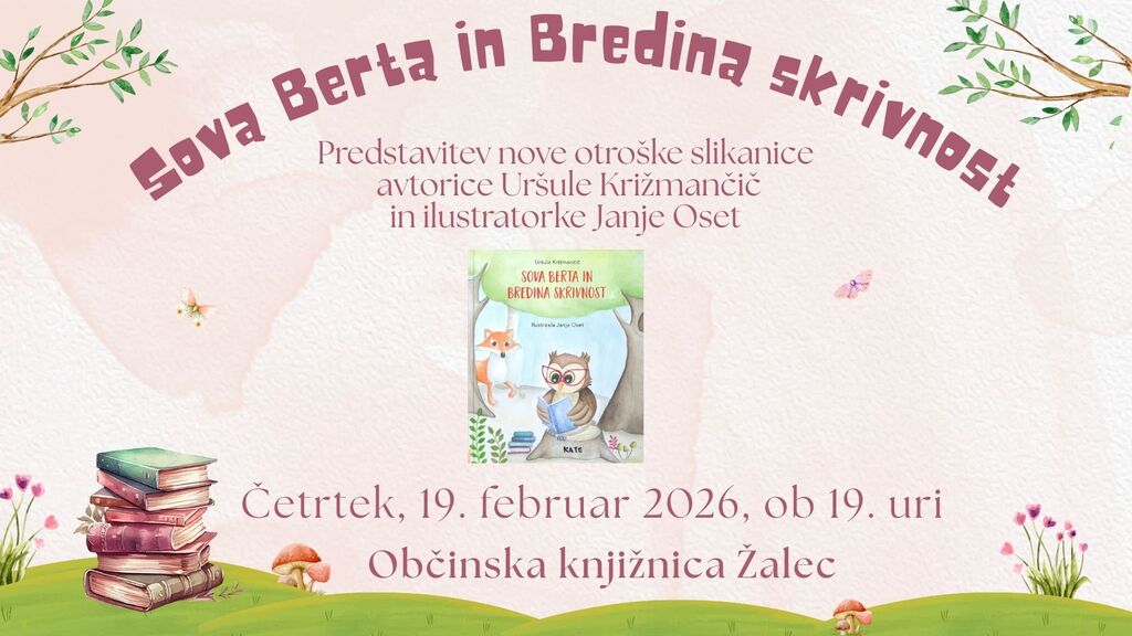 Vabimo vas na predstavitev nove otroške slikanice Sova Berta in Bredina skrivnost, ki je plod domišljije avtorice Uršule Križmančič in umetniških rok ilustratorke Janje Oset.