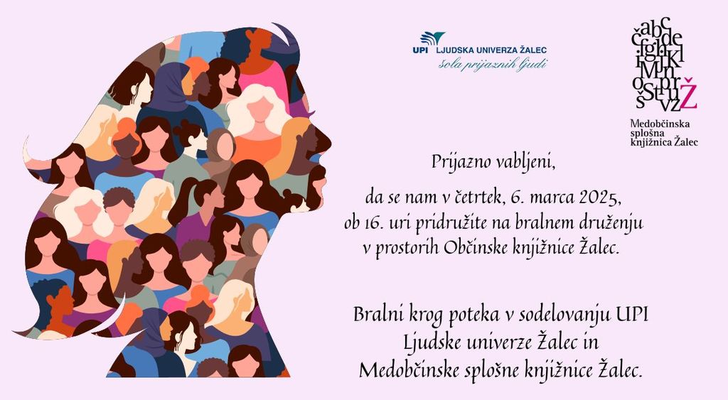 da se nam v četrtek, 6. marca 2025, ob 16. uri pridružite na bralnem druženju v prostorih Občinske knjižnice Žalec.