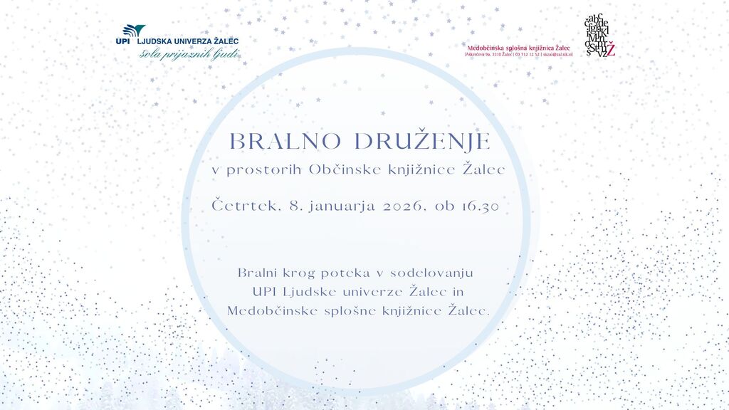 Bralni krog poteka v sodelovanju UPI Ljudske univerze Žalec in Medobčinske splošne knjižnice Žalec.
