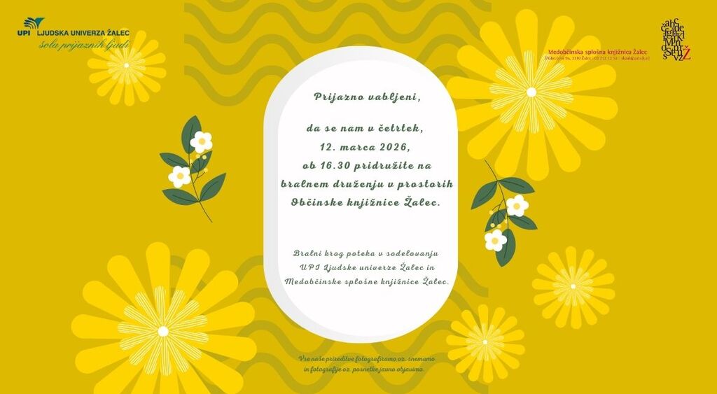 Bralni krog poteka v sodelovanju UPI Ljudske univerze Žalec in Medobčinske splošne knjižnice Žalec.