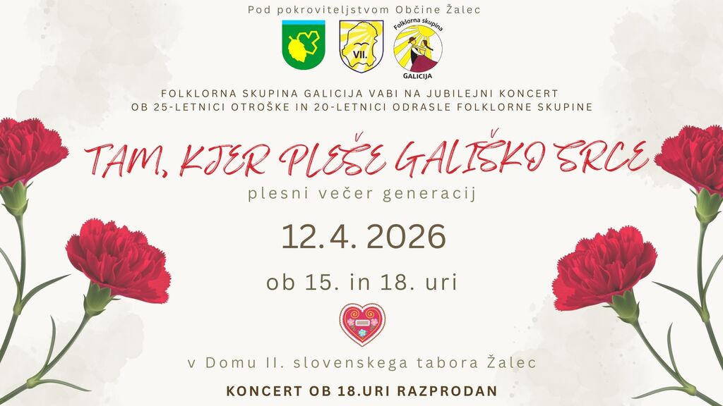 Jubilejni koncert Folklorne skupine Galicija je poklon tradiciji, ljudski ustvarjalnosti in vsem generacijam plesalcev ter godcev, ki že desetletja soustvarjajo prepoznavno folklorno zgodbo kraja.