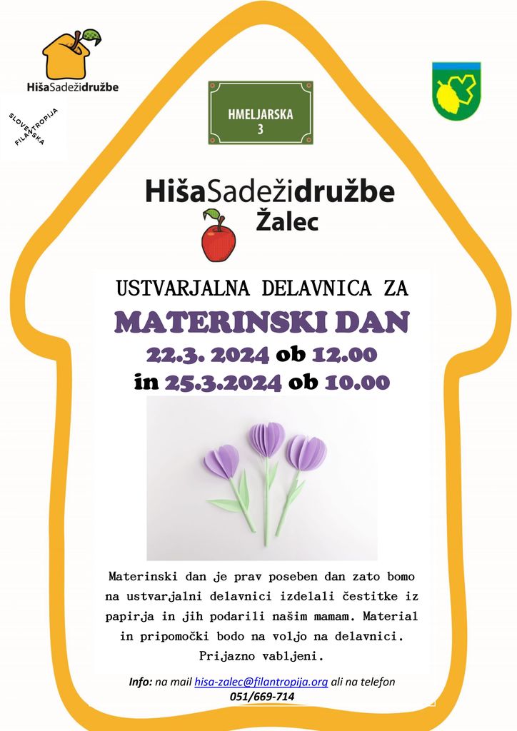 Organizator: HIŠA SADEŽI DRUŽBE ŽALEC - SLOVENSKA FILANTROPIJA - ZDRUŽENJE ZA PROMOCIJO PROSTOVOLJSTVA