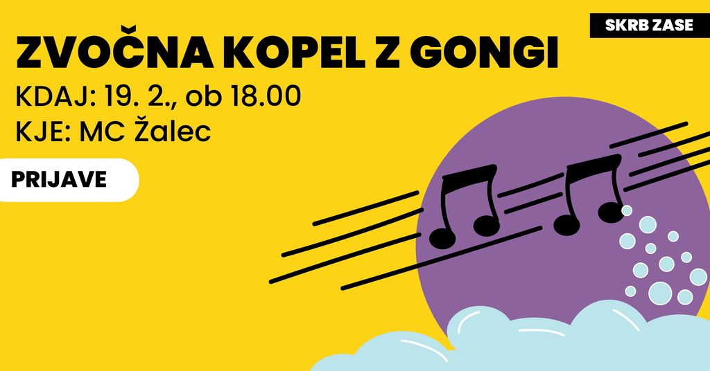 Zvočna kopel z gongi je namenjena osebam starejšim od 15 let. Število mest je omejeno na 20 udeležencev.