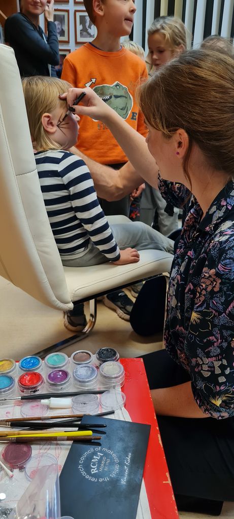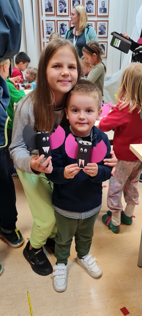 Sledilo je presenečenje, pridružila se nam je Marta Šporin, ki je s svojimi poslikavami obrazov navdušila najmlajše in tudi starejše otroke. Domov so nas pospremili pisani netopirji iz papirja, ker pa so bili mali obiskovalci res pridni poslušalci in ustvarjalci, smo jih, kot se za noč čarovnic spodobi, nagradili z bomboni.