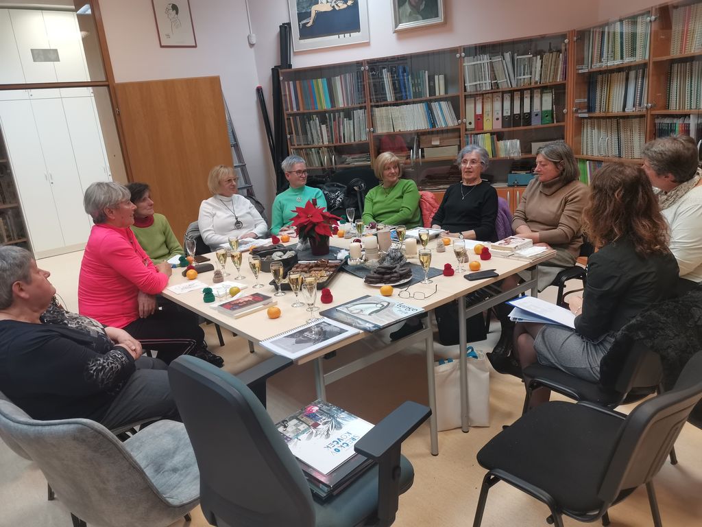 Decembrska druženja so vedno nekoliko drugačna, tudi naše bralno druženje je spolzelo prek okvira formalnosti. Povsem resno zastavljeno izhodišče pogovora je omehčala praznično pogrnjena miza, na katero so skoraj vsi prisotni prispevali svoje, predvsem pa neko pričakovanje, ki se nas običajno loti v začetku decembra.