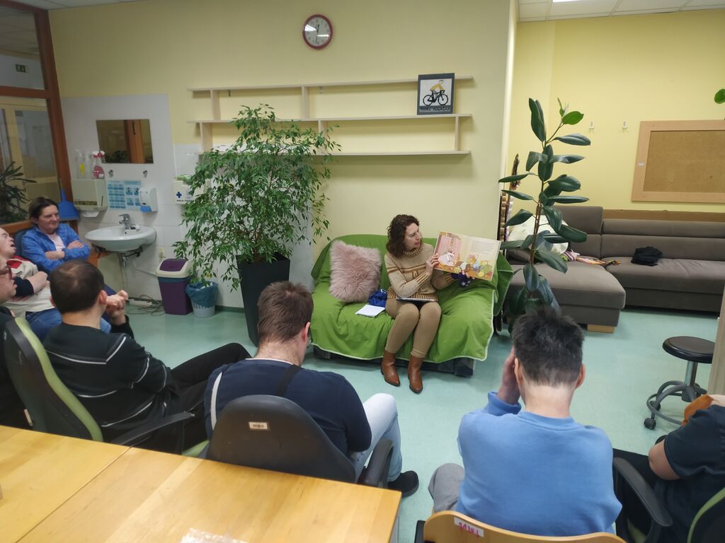 Srečali smo se v sredo, 28. januarja 2026, v prostorih VDC Saša. Varovanci so pravkar zaključili svoje delovne obveznosti in si privoščili krajši počitek. Ta pa ne bi bil popoln brez pravljice, ki sem jo pripovedovala knjižničarka Nataša.